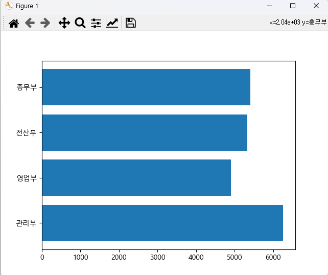 import MySQLdb import pandas as pd import pickle import matplotlib.pyplot as plt plt.rc('font', family='malgun gothic') import sys try : with open('mydb.dat', mode='rb') as obj: config = pickle.load(obj) except Exception as e: print('connect err : ', e) sys.exit() try: conn = MySQLdb.connect(**config) cursor = conn.cursor() sql = """ select jikwon_no, jikwon_name, buser_name, jikwon_pay, jikwon_jik from jikwon inner join buser on buser.buser_no = jikwon.buser_num """ cursor.execute(sql) df = pd.read_sql(sql, conn) df.columns = '사번','이름', '부서명', '연봉', '직급' df.index = range(1, 31) print(df.head(2)) print() print("부서별 연봉의 합 : ", df.groupby(['부서명'])['연봉'].sum()) print("부서별 연봉의 최대 : ", df.groupby(['부서명'])['연봉'].max()) print("부서별 연봉의 최소 : ", df.groupby(['부서명'])['연봉'].min()) print() print(pd.crosstab(df['부서명'], df['직급'], margins = True)) # 직원별 담당 고객자료를 출력 for i in range(1, len(df.index) - 1): sql2 = """ select gogek_no, gogek_name, gogek_tel from gogek inner join jikwon on gogek.gogek_damsano = jikwon.jikwon_no where jikwon_no = {} """.format(str(df.index[i])) #print(sql) cursor.execute(sql2) result = cursor.fetchone() if result == None: print(df['이름'][i + 1]," : 담당 고객 X") else: print(df['이름'][i + 1], '직원의 담당고객 정보') df2 = pd.read_sql(sql2, conn) df2.columns = ['고객번호', '고객명', '전화번호'] df2.set_index('고객번호', inplace=True) print(df2) # 부서명별 연봉의 평균으로 가로 막대 그래프 jik_ypay = df.groupby(['부서명'])['연봉'].mean() plt.barh(jik_ypay.index, jik_ypay.values) plt.show() except Exception as e: print("err : ", str(e)) finally: cursor.close() conn.close() <console> 사번 이름 부서명 연봉 직급 1 1 홍길동 총무부 9900 이사 2 2 한송이 영업부 8800 부장 부서별 연봉의 합 : 부서명 관리부 25050 영업부 58900 전산부 37300 총무부 37900 Name: 연봉, dtype: int64 부서별 연봉의 최대 : 부서명 관리부 8600 영업부 8800 전산부 7800 총무부 9900 Name: 연봉, dtype: int64 부서별 연봉의 최소 : 부서명 관리부 3400 영업부 2900 전산부 3900 총무부 3500 Name: 연봉, dtype: int64 직급 과장 대리 부장 사원 이사 All 부서명 관리부 1 1 1 1 0 4 영업부 3 2 1 6 0 12 전산부 2 3 0 2 0 7 총무부 0 1 1 4 1 7 All 6 7 3 13 1 30 한송이 직원의 담당고객 정보 고객명 전화번호 고객번호 5 차일호 02-294-2946 7 이분 02-546-2372 15 송운하 02-887-9344 이순신 직원의 담당고객 정보 고객명 전화번호 고객번호 2 김혜순 02-375-6946 3 최부자 02-692-8926 11 이영희 02-195-1764 이미라 직원의 담당고객 정보 고객명 전화번호 고객번호 9 장도리 02-496-1204 이순라 직원의 담당고객 정보 고객명 전화번호 고객번호 1 이나라 02-535-2580 8 신영래 031-948-0283 김이화 직원의 담당고객 정보 고객명 전화번호 고객번호 6 박상운 032-631-1204 김부만 : 담당 고객 X 김기만 : 담당 고객 X 채송화 직원의 담당고객 정보 고객명 전화번호 고객번호 12 이소리 02-296-1066 박치기 : 담당 고객 X 김부해 직원의 담당고객 정보 고객명 전화번호 고객번호 14 김현주 031-167-1884 박별나 직원의 담당고객 정보 고객명 전화번호 고객번호 10 강나루 032-341-2867 박명화 직원의 담당고객 정보 고객명 전화번호 고객번호 4 김해자 032-393-6277 박궁화 : 담당 고객 X 채미리 : 담당 고객 X 이유가 : 담당 고객 X 한국인 : 담당 고객 X 이순기 : 담당 고객 X 이유라 : 담당 고객 X 김유라 : 담당 고객 X 장비 : 담당 고객 X 김기욱 : 담당 고객 X 김기만 : 담당 고객 X 유비 : 담당 고객 X 박혁기 : 담당 고객 X 김나라 : 담당 고객 X 박하나 : 담당 고객 X 박명화 : 담당 고객 X 박가희 : 담당 고객 X