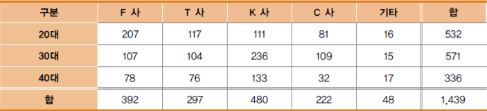 연령대별 sns 이용률의 동질성 검정 20대에서 40대까지 연령대별로 서로 조금씩 그 특성이 다른 SNS 서비스들에 대해 이용 현황을 조사한 자료를 바탕으로 연령대별로 홍보 전략을 세우고자 한다. 연령대별로 이용 현황이 서로 동일한지 검정해 보도록 하자.