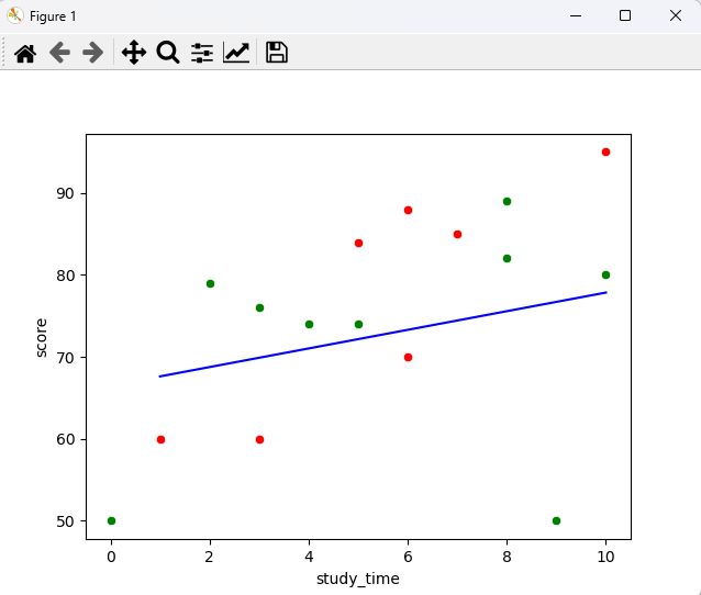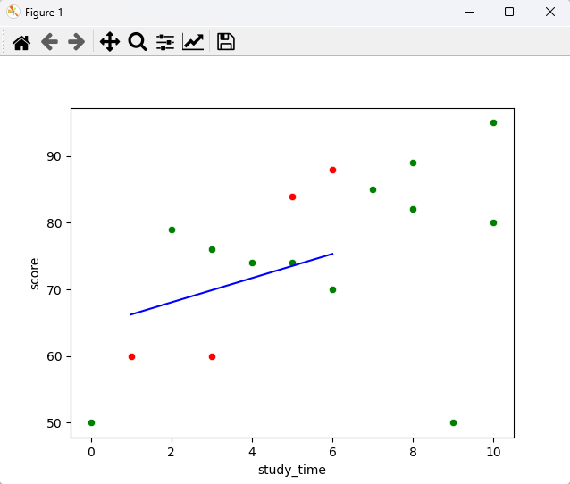 df = pd.DataFrame({'study_time':[3, 4, 5, 8, 10, 5, 8, 6, 3, 6, 10, 9, 7, 0, 1, 2],