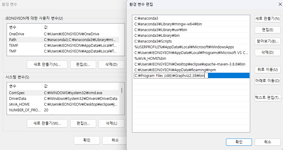 위의 경로에서 다운로드 후 패스 걸어야 된다.