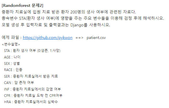 RandomForest 예제 2 - django를 활용(patient 데이터 사용)Python 데이터 분석 2022. 11. 22. 18:12