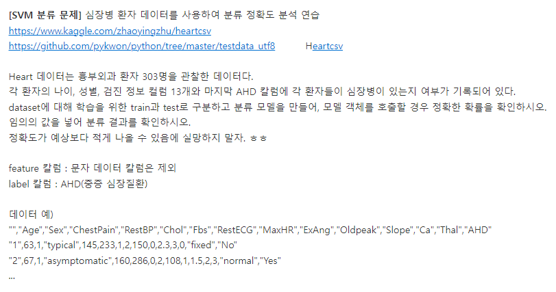 Support Vector Machine(SVM) 예제 - 심장병 환자 데이터Python 데이터 분석 2022. 11. 23. 18:33