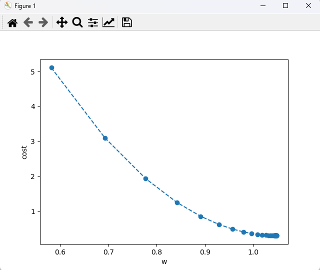 # 선형회귀 모형 작성 : 수식 사용 # tensorflow 사용 import tensorflow as tf import numpy as np from keras.optimizers import SGD, RMSprop, Adam x = [1., 2., 3., 4., 5.] y = [1.2, 2.8, 3.0, 3.5, 6.0] print(np.corrcoef(x, y)) # 상관계수(r) = 0.937 # 인과 관계가 있다 가정하고 회귀분석 작업을 진행 tf.random.set_seed(123) w = tf.Variable(tf.random.normal((1,))) b = tf.Variable(tf.random.normal((1,))) print(w.numpy(), ' ', b.numpy()) # 선형회귀식을 얻기 위해 cost를 줄여가는 작업 opti = SGD() @tf.function def train_func(x, y): with tf.GradientTape() as tape: hypo = tf.add(tf.multiply(w, x), b) # y = wx + b, 예측값 loss = tf.reduce_mean(tf.square(tf.subtract(hypo, y))) # subtract 빼기 함수 grad = tape.gradient(loss, [w, b]) # 자동 미분을 해 줌 opti.apply_gradients(zip(grad, [w, b])) return loss w_vals = [] cost_vals = [] for i in range(1, 101): # epochs loss_val = train_func(x, y) cost_vals.append(loss_val.numpy()) w_vals.append(w.numpy()) if i % 10 == 0: # 10의 배수일 경우에만 출력 print(loss_val) print('cost :', cost_vals) print('w :', w_vals) print() # w, cost를 시각화 import matplotlib.pyplot as plt plt.plot(w_vals, cost_vals, 'o--') plt.xlabel('w') plt.ylabel('cost') plt.show() print('cost가 최소일 때 w :', w.numpy()) print('cost가 최소일 때 b :', b.numpy()) # yhat = 0.90847826 * x + 0.6487321 # 선형회귀식으로 시각화 y_pred = tf.multiply(x, w) + b print('y_pred :', y_pred) print('y :', y) plt.scatter(x, y, label='real') plt.plot(x, y_pred, 'b-', label='pred') plt.xlabel('x') plt.ylabel('y') plt.legend() plt.show() print() # 새 값으로 정량적 예측 new_x = [3.5, 9.7] new_pred = tf.multiply(new_x, w) + b print('예측값 :', new_pred.numpy()) <console> [[1. 0.93713845] [0.93713845 1. ]] [-0.8980837] [0.33875433] tf.Tensor(0.664091, shape=(), dtype=float32) tf.Tensor(0.35622105, shape=(), dtype=float32) tf.Tensor(0.35087812, shape=(), dtype=float32) tf.Tensor(0.34716052, shape=(), dtype=float32) tf.Tensor(0.34369203, shape=(), dtype=float32) tf.Tensor(0.34045076, shape=(), dtype=float32) tf.Tensor(0.3374218, shape=(), dtype=float32) tf.Tensor(0.3345912, shape=(), dtype=float32) tf.Tensor(0.33194596, shape=(), dtype=float32) tf.Tensor(0.32947397, shape=(), dtype=float32) cost : [39.713856, 23.294338, 13.725664, 8.149324, 4.899521, 3.0055096, 1.9015872, 1.2580913, 0.88291013, 0.664091, 0.5363928, 0.46179694, 0.4181475, 0.39253327, 0.37743038, 0.36845425, 0.36304945, 0.3597273, 0.35761958, 0.35622105, 0.35523695, 0.35449535, 0.35389638, 0.35338143, 0.35291666, 0.35248226, 0.3520667, 0.35166317, 0.35126784, 0.35087812, 0.35049295, 0.35011154, 0.34973326, 0.34935778, 0.34898525, 0.34861523, 0.3482477, 0.3478829, 0.3475204, 0.34716052, 0.34680304, 0.3464479, 0.3460952, 0.3457449, 0.34539694, 0.34505135, 0.34470809, 0.3443671, 0.34402838, 0.34369203, 0.34335798, 0.34302616, 0.34269652, 0.34236914, 0.34204403, 0.34172112, 0.3414003, 0.34108162, 0.34076506, 0.34045076, 0.3401385, 0.3398285, 0.33952048, 0.33921456, 0.33891064, 0.3386088, 0.33830896, 0.33801132, 0.33771548, 0.3374218, 0.33712998, 0.33684015, 0.33655232, 0.33626643, 0.33598256, 0.33570048, 0.3354203, 0.33514208, 0.33486572, 0.3345912, 0.3343185, 0.3340477, 0.3337787, 0.33351144, 0.33324623, 0.33298248, 0.3327208, 0.33246067, 0.33220252, 0.33194596, 0.33169118, 0.33143792, 0.3311866, 0.33093697, 0.33068895, 0.3304426, 0.33019796, 0.32995504, 0.32971364, 0.32947397] w : [array([-0.48163053], dtype=float32), array([-0.1635837], dtype=float32), array([0.07934122], dtype=float32), array([0.26491904], dtype=float32), array([0.4067187], dtype=float32), array([0.5150985], dtype=float32), array([0.5979658], dtype=float32), array([0.6613568], dtype=float32), array([0.70987964], dtype=float32), array([0.7470519], dtype=float32), array([0.7755589], dtype=float32), array([0.7974506], dtype=float32), array([0.81429183], dtype=float32), array([0.82727724], dtype=float32), array([0.8373187], dtype=float32), array([0.8451124], dtype=float32), array([0.85118973], dtype=float32), array([0.85595644], dtype=float32), array([0.8597222], dtype=float32), array([0.86272335], dtype=float32), array([0.8651405], dtype=float32), array([0.8671113], dtype=float32), array([0.86874104], dtype=float32), array([0.8701099], dtype=float32), array([0.8712793], dtype=float32), array([0.8722959], dtype=float32), array([0.8731955], dtype=float32), array([0.87400544], dtype=float32), array([0.8747464], dtype=float32), array([0.8754343], dtype=float32), array([0.8760813], dtype=float32), array([0.8766967], dtype=float32), array([0.87728757], dtype=float32), array([0.87785923], dtype=float32), array([0.8784159], dtype=float32), array([0.87896067], dtype=float32), array([0.8794959], dtype=float32), array([0.88002354], dtype=float32), array([0.88054496], dtype=float32), array([0.8810612], dtype=float32), array([0.88157314], dtype=float32), array([0.88208133], dtype=float32), array([0.8825863], dtype=float32), array([0.8830884], dtype=float32), array([0.88358796], dtype=float32), array([0.8840851], dtype=float32), array([0.88458014], dtype=float32), array([0.88507307], dtype=float32), array([0.885564], dtype=float32), array([0.8860531], dtype=float32), array([0.88654035], dtype=float32), array([0.88702583], dtype=float32), array([0.8875095], dtype=float32), array([0.88799155], dtype=float32), array([0.88847184], dtype=float32), array([0.88895047], dtype=float32), array([0.8894275], dtype=float32), array([0.88990283], dtype=float32), array([0.89037657], dtype=float32), array([0.8908487], dtype=float32), array([0.8913192], dtype=float32), array([0.8917881], dtype=float32), array([0.8922554], dtype=float32), array([0.8927212], dtype=float32), array([0.8931853], dtype=float32), array([0.8936479], dtype=float32), array([0.8941089], dtype=float32), array([0.8945683], dtype=float32), array([0.8950262], dtype=float32), array([0.89548254], dtype=float32), array([0.8959373], dtype=float32