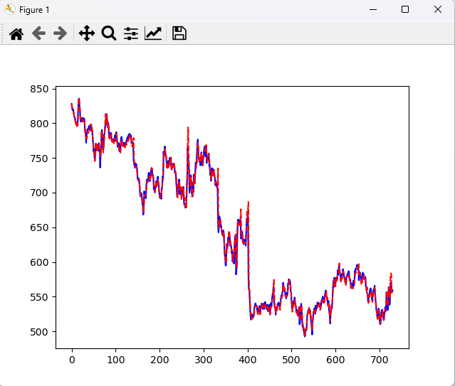 # 주식 데이터로 예측 모형 작성. 전날 데이터로 다음날 종가 예측 import numpy as np from keras.models import Sequential from keras.layers import Dense import tensorflow as tf import matplotlib.pyplot as plt from sklearn.preprocessing import MinMaxScaler xy =np.loadtxt('https://raw.githubusercontent.com/pykwon/python/master/testdata_utf8/stockdaily.csv', delimiter=',', skiprows=1) print(xy[:2], xy.shape) # (732, 5) x_data = xy[:, 0:-1] scaler = MinMaxScaler(feature_range=(0, 1)) # 정규화 처리 x_data = scaler.fit_transform(x_data) # feature만 정규화 print(x_data[:2]) y_data = xy[:, [-1]] print(y_data[:2]) # 이전일 Open High Low Volume과 다음날 Close를 한 행으로 만들기 print(x_data[0], y_data[0]) print(x_data[1], y_data[1]) print() x_data = np.delete(x_data, -1, axis=0) # 마지막 x_data 행 삭제 y_data = np.delete(y_data, 0) # 첫번째 y_data 행 삭제 print(x_data[0], y_data[0]) print('-----') model = Sequential() model.add(Dense(units=1, input_dim=4, activation='linear')) model.compile(optimizer='sgd', loss='mse', metrics=['mse']) model.fit(x_data, y_data, epochs=200, verbose=0) print('train/test 없이 평가 :', model.evaluate(x_data, y_data, verbose=0)) print(x_data[10]) test = x_data[10].reshape(-1, 4) print('실제값 :', y_data[10]) print('예측값 :', model.predict(test)) print() pred = model.predict(x_data) from sklearn.metrics import r2_score print('train/test 없이 평가 :', r2_score(y_data, pred)) # 0.9938 과적합 의심 # train/test 전 모델로 시각화 plt.plot(y_data, 'b') plt.plot(pred, 'r--') plt.show() # 순서가 중요하기 때문에 셔플이 되면 안 된다. print('\n과적합 방지를 목적으로 학습/검정 데이터로 분리') print(len(x_data)) train_size = int(len(x_data) * 0.7) test_size = len(x_data) - train_size print(train_size, ' ', test_size) x_train, x_test = x_data[0:train_size], x_data[train_size:len(x_data)] y_train, y_test = y_data[0:train_size], y_data[train_size:len(x_data)] print(x_train[:2], x_train.shape) print(x_test[:2], x_test.shape) from sklearn.model_selection import train_test_split x_train, x_test, y_train, y_test = train_test_split(x_data, y_data, test_size=0.3, shuffle=False) print(x_train.shape, x_test.shape, y_train.shape, y_test.shape) # (511, 4) (220, 4) (511,) (220,) print('--------') model2 = Sequential() model2.add(Dense(units=1, input_dim=4, activation='linear')) model2.compile(optimizer='sgd', loss='mse', metrics=['mse']) model2.fit(x_train, y_train, epochs=200, verbose=0) print('train/test split 후 평가 :', model2.evaluate(x_test, y_test, verbose=0)) print(x_test[10]) test = x_test[10].reshape(-1, 4) print('실제값 :', y_test[10]) print('예측값 :', model2.predict(test)) print() pred2 = model2.predict(x_test) print('train/test split 후 평가 :', r2_score(y_test, pred2)) # 0.947 # train/test split 후 모델로 시각화 plt.plot(y_test, 'b') plt.plot(pred2, 'r--') plt.show() print('--------') model3 = Sequential() model3.add(Dense(units=1, input_dim=4, activation='linear')) model3.compile(optimizer='sgd', loss='mse', metrics=['mse']) model3.fit(x_train, y_train, epochs=200, verbose=0, validation_split=0.15) print('train/test validation 후 평가 :', model2.evaluate(x_test, y_test, verbose=0)) pred3 = model3.predict(x_test) print('train/test validation 후 평가 :', r2_score(y_test, pred3)) # 0.947 # train/test validation 후 모델로 시각화 plt.plot(y_test, 'b') plt.plot(pred3, 'r--') plt.show() # 머신러닝의 이슈 : 모델의 최적화와 일반화 사이의 줄다리기다~ <console> [[8.28659973e+02 8.33450012e+02 8.28349976e+02 1.24770000e+06 8.31659973e+02] [8.23020020e+02 8.28070007e+02 8.21655029e+02 1.59780000e+06 8.28070007e+02]] (732, 5) [[0.97333581 0.97543152 1. 0.11112306] [0.95690035 0.95988111 0.9803545 0.14250246]] [[831.659973] [828.070007]] [0.97333581 0.97543152 1. 0.11112306] [831.659973] [0.95690035 0.95988111 0.9803545 0.14250246] [828.070007] [0.97333581 0.97543152 1. 0.11112306] 828.070007 ----- 2022-12-01 11:04:23.670913: I tensorflow/core/platform/cpu_feature_guard.cc:193] This TensorFlow binary is optimized with oneAPI Deep Neural Network Library (oneDNN) to use the following CPU instructions in performance-critical operations: AVX AVX2 To enable them in other operations, rebuild TensorFlow with the appropriate compiler flags. train/test 없이 평가 : [62.614986419677734, 62.614986419677734] [0.88894325 0.88357424 0.90287217 0.10453527] 실제값 : 801.48999 1/1 [==============================] - ETA: 0s 1/1 [==============================] - 0s 31ms/step 예측값 : [[796.23254]] 1/23 [>.............................] - ETA: 0s 23/23 [==============================] - 0s 318us/step train/test 없이 평가 : 0.993861859034064 과적합 방지를 목적으로 학습/검정 데이터로 분리 731 511 220 [[0.97333581 0.97543152 1. 0.11112306] [0.95690035 0.95988111 0.9803545 0.14250246]] (511, 4) [[0.10097438 0.12060001 0.11549761 0.1561262 ] [0.097186 0.10412462 0.1128567 0.11291566]] (220, 4) (511, 4) (220, 4) (511,) (220,) -------- train/test split 후 평가 : [34.382816314697266, 34.382816314697266] [0.10292681 0.10036705 0.08988032 0.16994712] 실제값 : 535.212448 1/1 [==============================] - ETA: 0s 1/1 [==============================] - 0s 18ms/step 예측값 : [[524.8133]] 1/7 [===>..........................] - ETA: 0s 7/7 [==============================] - 0s 333us/step train/test split 후 평가 : 0.9481664118667508 -------- train/test validation 후 평가 : [34.382816314697266, 34.382816314697266] 1/7 [===>..........................] - ETA: 0s 7/7 [==============================] - 0s 333us/step train/test split 후 평가 : 0.8351870732674049