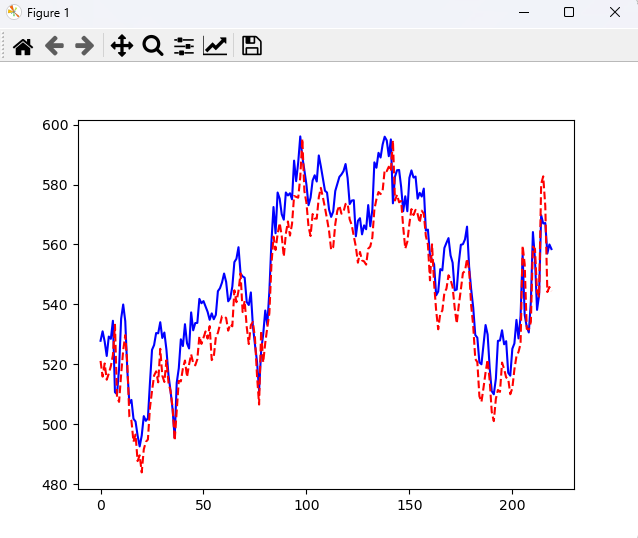 # 주식 데이터로 예측 모형 작성. 전날 데이터로 다음날 종가 예측 import numpy as np from keras.models import Sequential from keras.layers import Dense import tensorflow as tf import matplotlib.pyplot as plt from sklearn.preprocessing import MinMaxScaler xy =np.loadtxt('https://raw.githubusercontent.com/pykwon/python/master/testdata_utf8/stockdaily.csv', delimiter=',', skiprows=1) print(xy[:2], xy.shape) # (732, 5) x_data = xy[:, 0:-1] scaler = MinMaxScaler(feature_range=(0, 1)) # 정규화 처리 x_data = scaler.fit_transform(x_data) # feature만 정규화 print(x_data[:2]) y_data = xy[:, [-1]] print(y_data[:2]) # 이전일 Open High Low Volume과 다음날 Close를 한 행으로 만들기 print(x_data[0], y_data[0]) print(x_data[1], y_data[1]) print() x_data = np.delete(x_data, -1, axis=0) # 마지막 x_data 행 삭제 y_data = np.delete(y_data, 0) # 첫번째 y_data 행 삭제 print(x_data[0], y_data[0]) print('-----') model = Sequential() model.add(Dense(units=1, input_dim=4, activation='linear')) model.compile(optimizer='sgd', loss='mse', metrics=['mse']) model.fit(x_data, y_data, epochs=200, verbose=0) print('train/test 없이 평가 :', model.evaluate(x_data, y_data, verbose=0)) print(x_data[10]) test = x_data[10].reshape(-1, 4) print('실제값 :', y_data[10]) print('예측값 :', model.predict(test)) print() pred = model.predict(x_data) from sklearn.metrics import r2_score print('train/test 없이 평가 :', r2_score(y_data, pred)) # 0.9938 과적합 의심 # train/test 전 모델로 시각화 plt.plot(y_data, 'b') plt.plot(pred, 'r--') plt.show() # 순서가 중요하기 때문에 셔플이 되면 안 된다. print('\n과적합 방지를 목적으로 학습/검정 데이터로 분리') print(len(x_data)) train_size = int(len(x_data) * 0.7) test_size = len(x_data) - train_size print(train_size, ' ', test_size) x_train, x_test = x_data[0:train_size], x_data[train_size:len(x_data)] y_train, y_test = y_data[0:train_size], y_data[train_size:len(x_data)] print(x_train[:2], x_train.shape) print(x_test[:2], x_test.shape) from sklearn.model_selection import train_test_split x_train, x_test, y_train, y_test = train_test_split(x_data, y_data, test_size=0.3, shuffle=False) print(x_train.shape, x_test.shape, y_train.shape, y_test.shape) # (511, 4) (220, 4) (511,) (220,) print('--------') model2 = Sequential() model2.add(Dense(units=1, input_dim=4, activation='linear')) model2.compile(optimizer='sgd', loss='mse', metrics=['mse']) model2.fit(x_train, y_train, epochs=200, verbose=0) print('train/test split 후 평가 :', model2.evaluate(x_test, y_test, verbose=0)) print(x_test[10]) test = x_test[10].reshape(-1, 4) print('실제값 :', y_test[10]) print('예측값 :', model2.predict(test)) print() pred2 = model2.predict(x_test) print('train/test split 후 평가 :', r2_score(y_test, pred2)) # 0.947 # train/test split 후 모델로 시각화 plt.plot(y_test, 'b') plt.plot(pred2, 'r--') plt.show() print('--------') model3 = Sequential() model3.add(Dense(units=1, input_dim=4, activation='linear')) model3.compile(optimizer='sgd', loss='mse', metrics=['mse']) model3.fit(x_train, y_train, epochs=200, verbose=0, validation_split=0.15) print('train/test validation 후 평가 :', model2.evaluate(x_test, y_test, verbose=0)) pred3 = model3.predict(x_test) print('train/test validation 후 평가 :', r2_score(y_test, pred3)) # 0.947 # train/test validation 후 모델로 시각화 plt.plot(y_test, 'b') plt.plot(pred3, 'r--') plt.show() # 머신러닝의 이슈 : 모델의 최적화와 일반화 사이의 줄다리기다~ <console> [[8.28659973e+02 8.33450012e+02 8.28349976e+02 1.24770000e+06 8.31659973e+02] [8.23020020e+02 8.28070007e+02 8.21655029e+02 1.59780000e+06 8.28070007e+02]] (732, 5) [[0.97333581 0.97543152 1. 0.11112306] [0.95690035 0.95988111 0.9803545 0.14250246]] [[831.659973] [828.070007]] [0.97333581 0.97543152 1. 0.11112306] [831.659973] [0.95690035 0.95988111 0.9803545 0.14250246] [828.070007] [0.97333581 0.97543152 1. 0.11112306] 828.070007 ----- 2022-12-01 11:04:23.670913: I tensorflow/core/platform/cpu_feature_guard.cc:193] This TensorFlow binary is optimized with oneAPI Deep Neural Network Library (oneDNN) to use the following CPU instructions in performance-critical operations: AVX AVX2 To enable them in other operations, rebuild TensorFlow with the appropriate compiler flags. train/test 없이 평가 : [62.614986419677734, 62.614986419677734] [0.88894325 0.88357424 0.90287217 0.10453527] 실제값 : 801.48999 1/1 [==============================] - ETA: 0s 1/1 [==============================] - 0s 31ms/step 예측값 : [[796.23254]] 1/23 [>.............................] - ETA: 0s 23/23 [==============================] - 0s 318us/step train/test 없이 평가 : 0.993861859034064 과적합 방지를 목적으로 학습/검정 데이터로 분리 731 511 220 [[0.97333581 0.97543152 1. 0.11112306] [0.95690035 0.95988111 0.9803545 0.14250246]] (511, 4) [[0.10097438 0.12060001 0.11549761 0.1561262 ] [0.097186 0.10412462 0.1128567 0.11291566]] (220, 4) (511, 4) (220, 4) (511,) (220,) -------- train/test split 후 평가 : [34.382816314697266, 34.382816314697266] [0.10292681 0.10036705 0.08988032 0.16994712] 실제값 : 535.212448 1/1 [==============================] - ETA: 0s 1/1 [==============================] - 0s 18ms/step 예측값 : [[524.8133]] 1/7 [===>..........................] - ETA: 0s 7/7 [==============================] - 0s 333us/step train/test split 후 평가 : 0.9481664118667508 -------- train/test validation 후 평가 : [34.382816314697266, 34.382816314697266] 1/7 [===>..........................] - ETA: 0s 7/7 [==============================] - 0s 333us/step train/test split 후 평가 : 0.8351870732674049