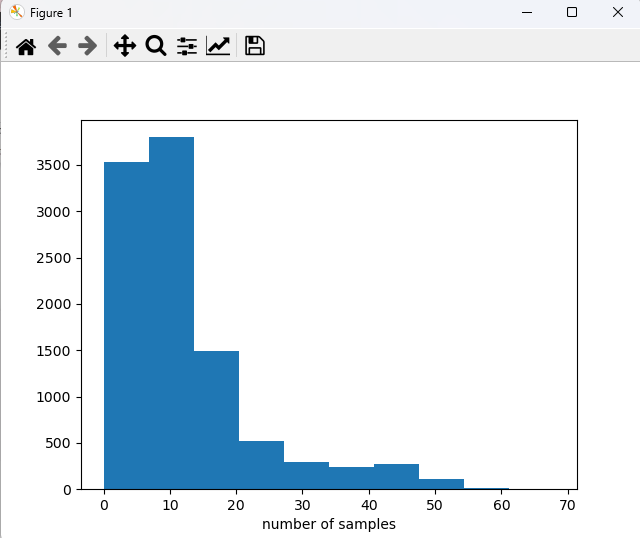 plt.xlabel('number of samples')