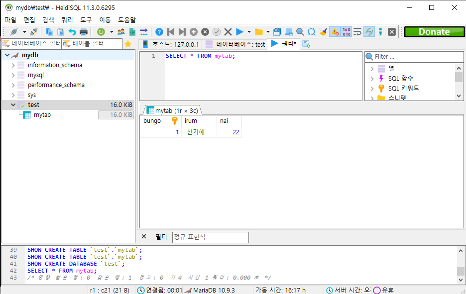 HeidiSQL 어플리케이션이 생기는데 여기서도 사용 가능하다. DB 관리할 때 좋다