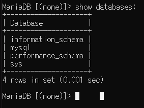 ctrl + c 로 나가면 데이터를 잃을 가능성이 있기때문에 exit;를 사용해서 나가야 한다.