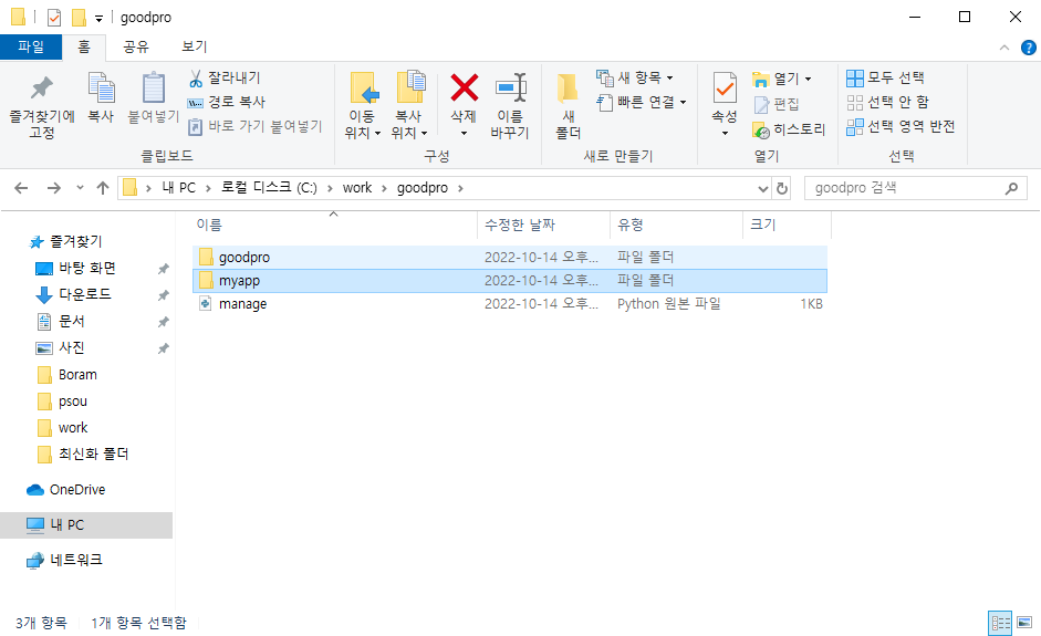 python manage.py startapp myapp를 입력하면 최종 파일이 만들어진다.