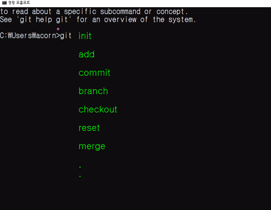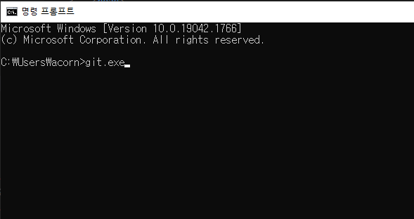 git 초기 설치 후 git.exe를 명령 프롬포트에 입력하여 잘 설치되었는지 확인할 수 있다.