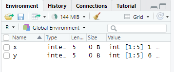 # 객체 file i/o x <- 1:5 y = 6:10 save(x, y, file='output/xy.RData') # 객체를 R 파일로 저장할 수 있다. rm(list=ls()) load('output/xy.RData') # 저장한 파일 객체를 불러올 수 있다.